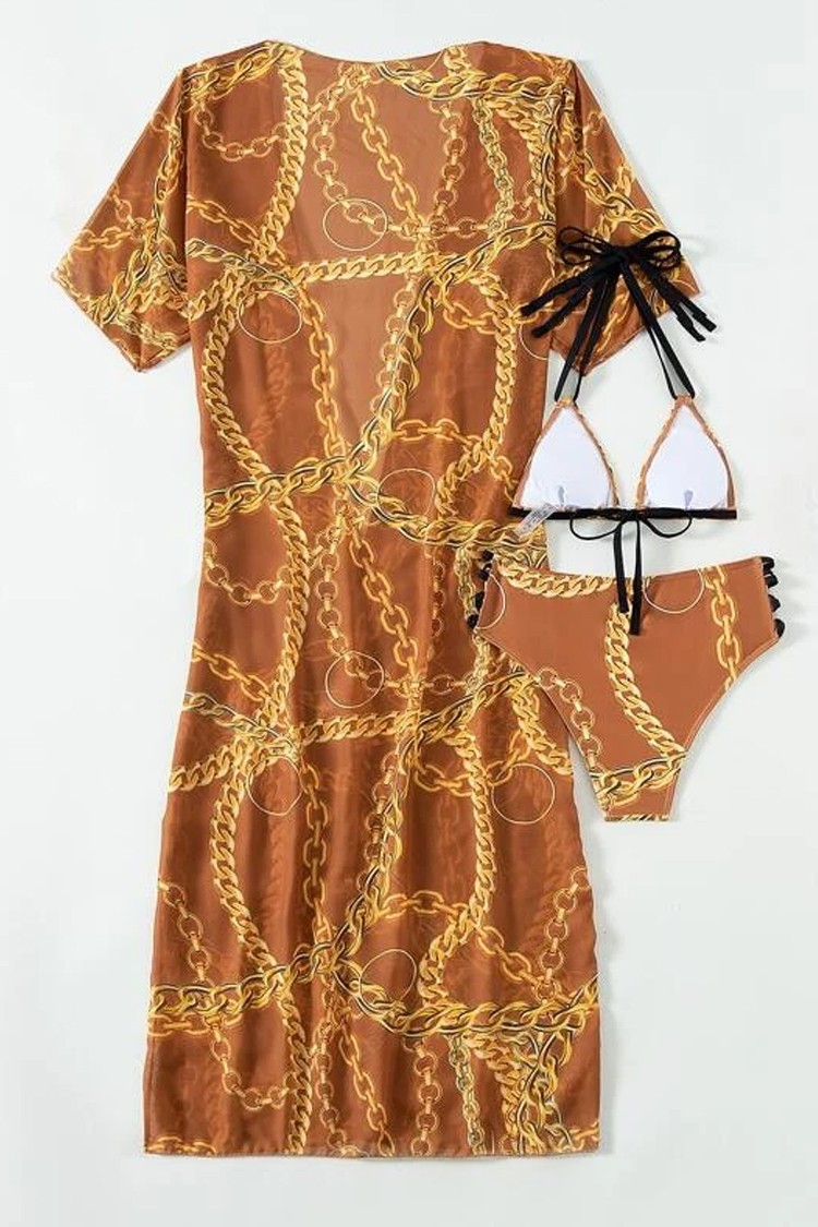 - Насладете се на морската ваканция с ефектен плажен комплект бански костюм от две части и парео с актуален принт.