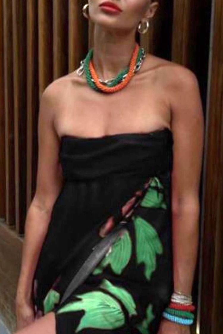 - Роклята е с удобна кройка, дължина до глезена и дълбока цепка в предната си част. Закопчава се със скрит цип отстрани.