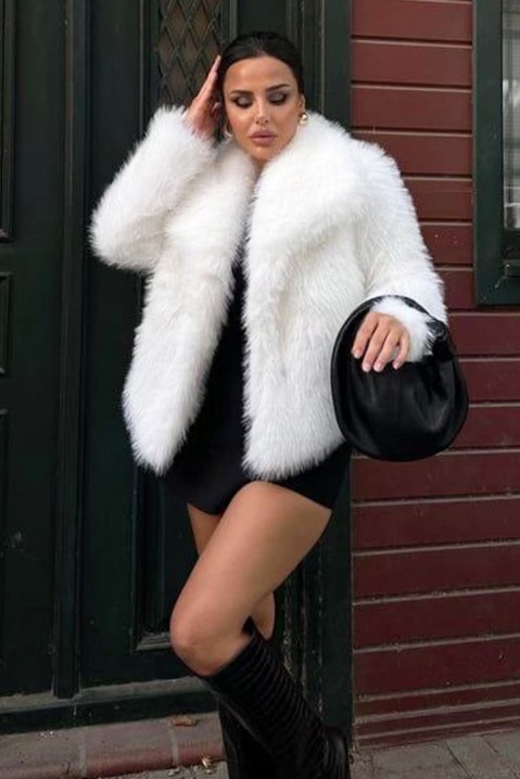 - Разнообразете зимния си гардероб с палто с пухкав еко косъм в бял цвят.