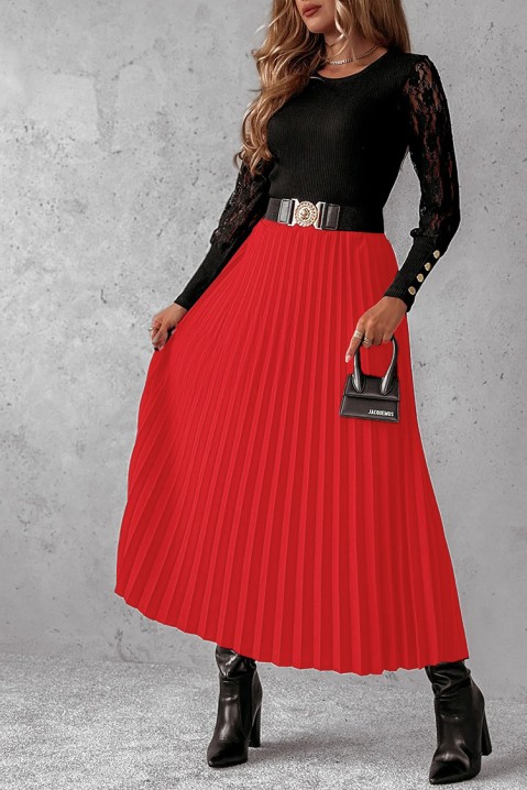 - Полата е с висока талия, миди дължина и плисиран ефект.