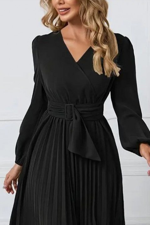 - Роклята е със секси изрязано деколте и е с колан от същия плат на талията.