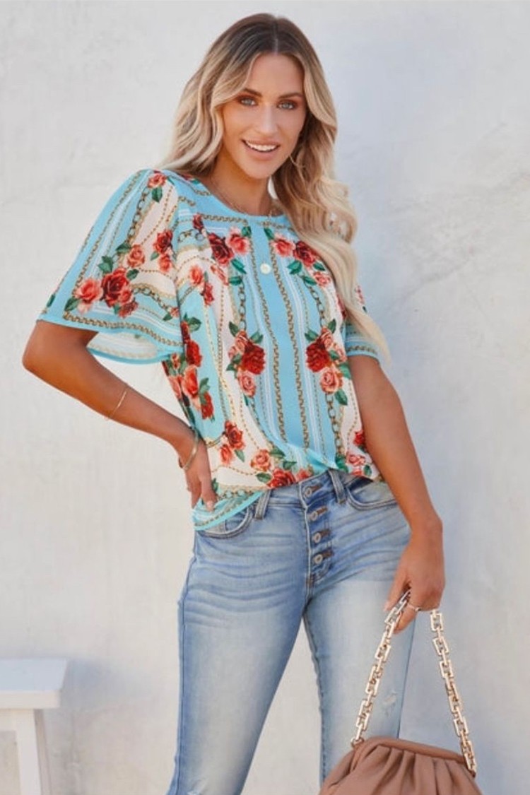 - Уникално предложение за привлекателна визия е тази блуза с флорални и нежни мотиви.