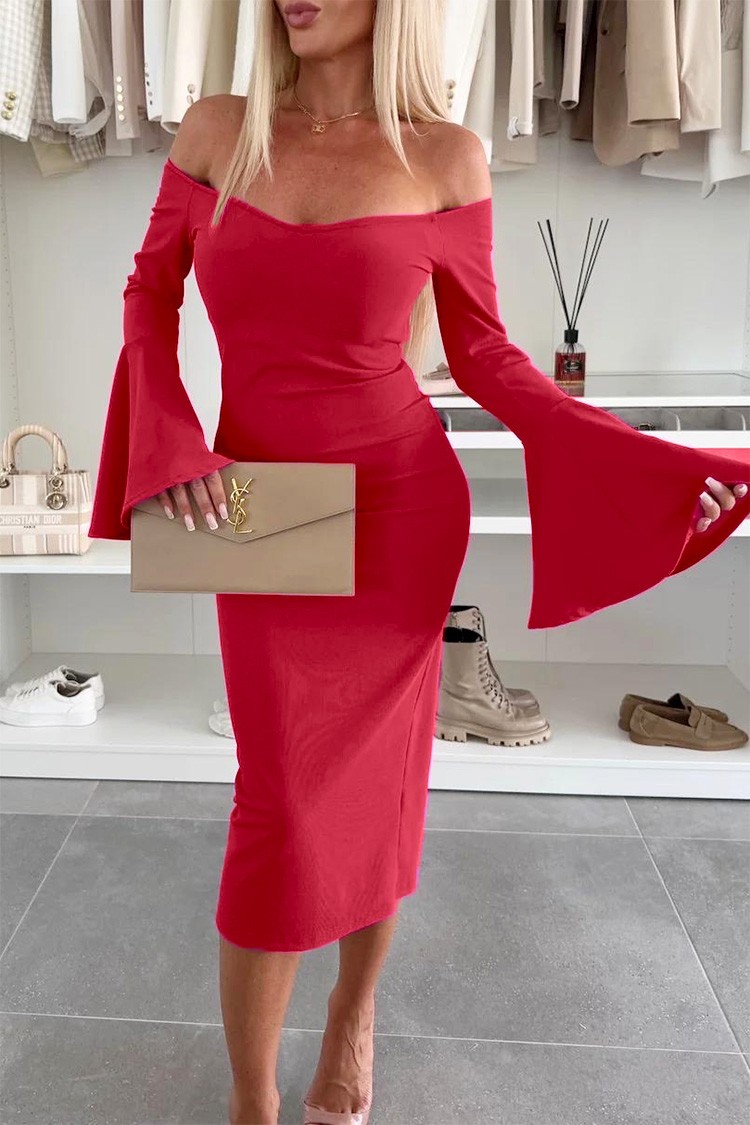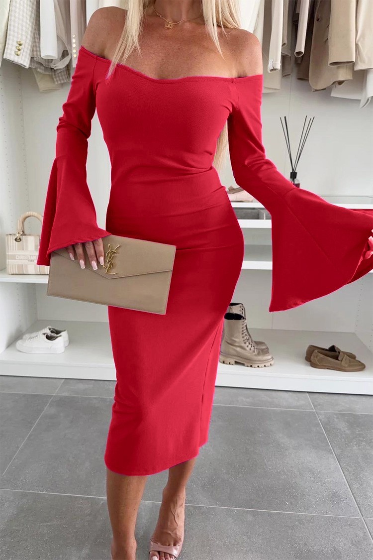 - Елегантна миди рокля в класически цвят, подходяща за специални поводи.