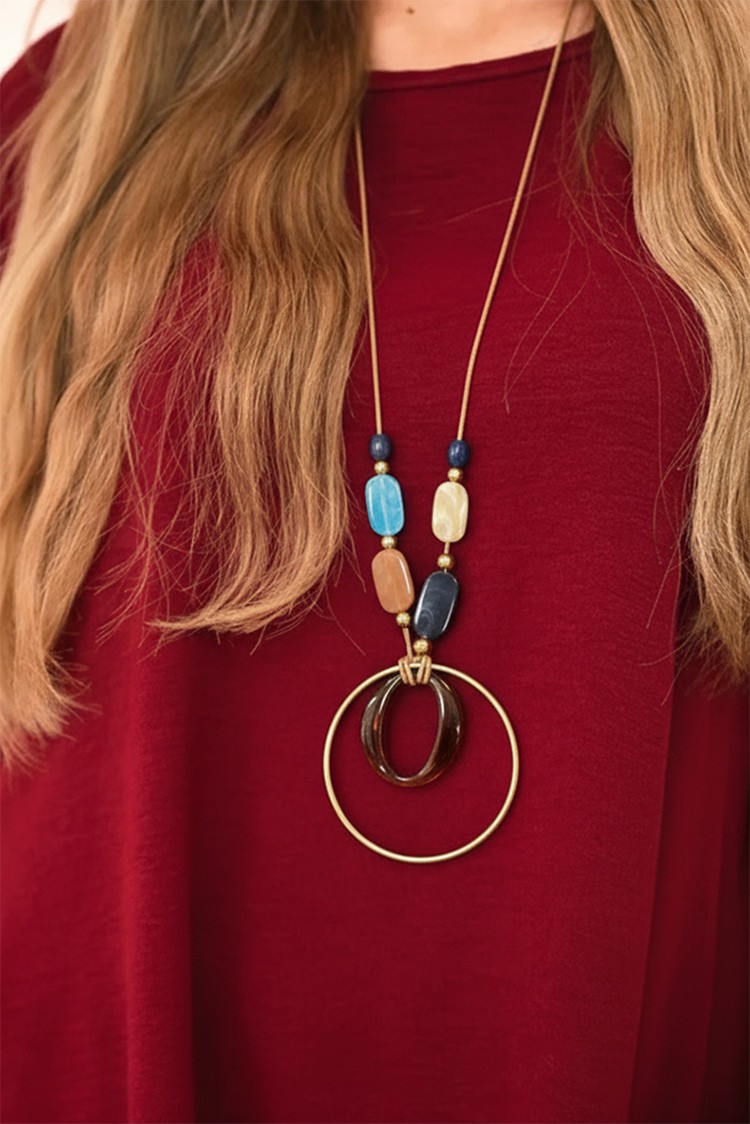 • Стилен комплект от две части - комфортни панталон и блуза с ефектно колие, изключително подходящи за ежедневието.