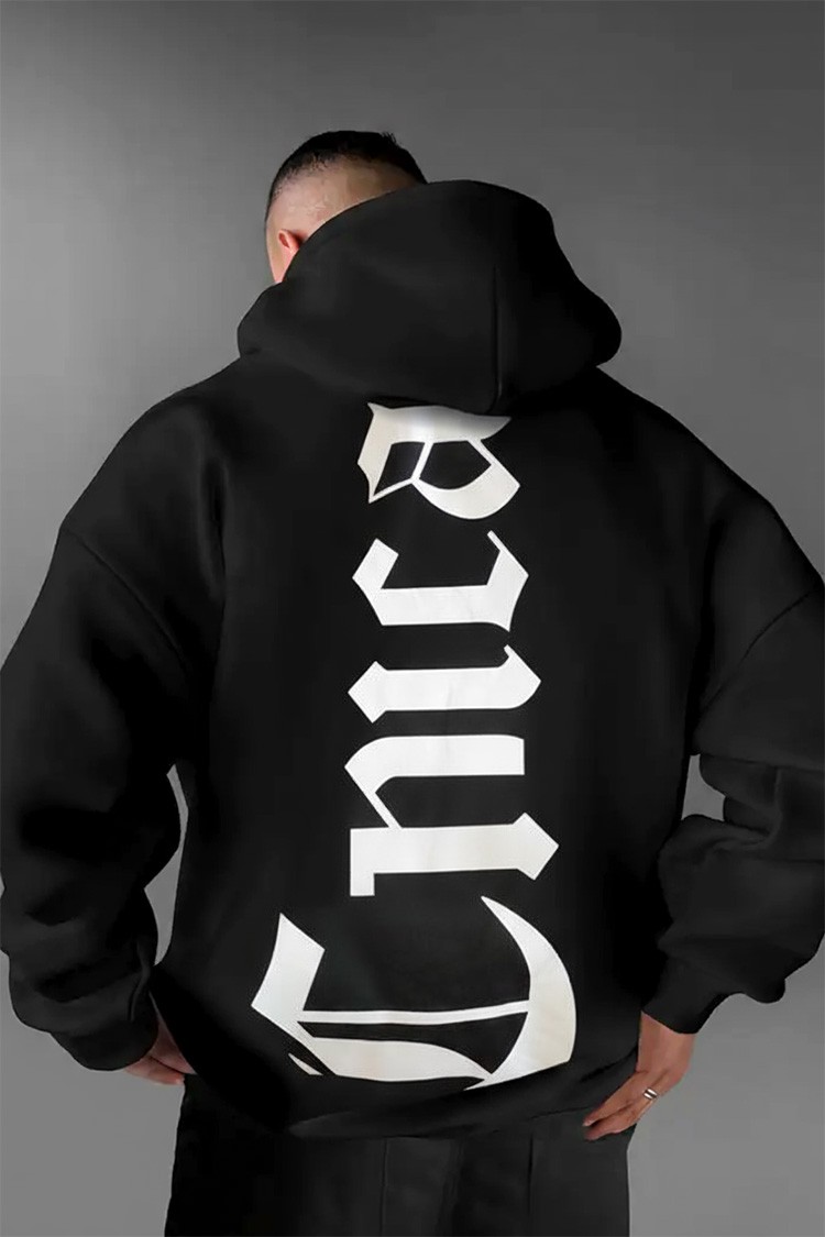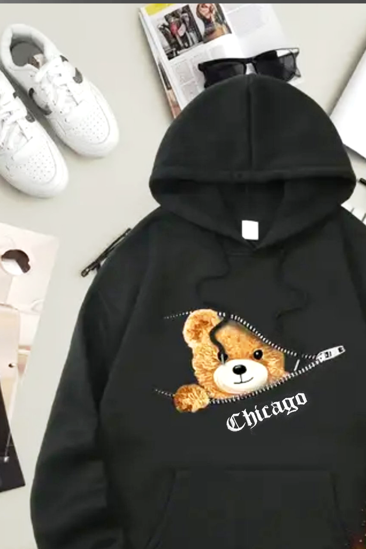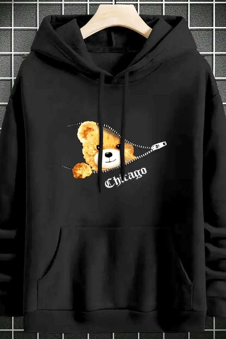 - Практичен мъжки суичър с принт с мече в черен цвят, подходящ за различни модни съчетания.