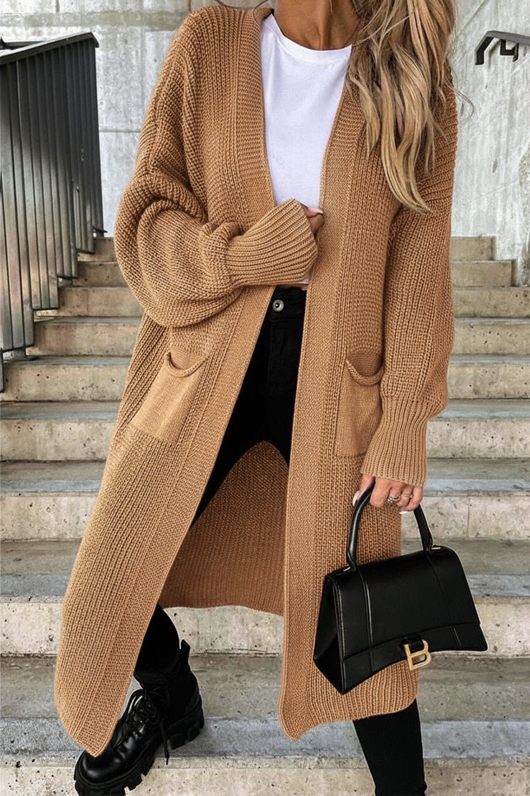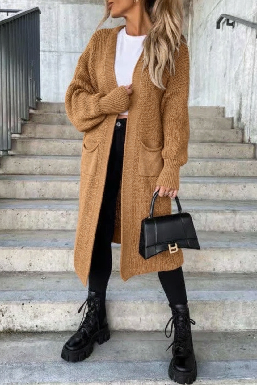 - Мека и дълга дамска жилетка с класическа кройка и практични джобове, подходяща за ежедневието.
