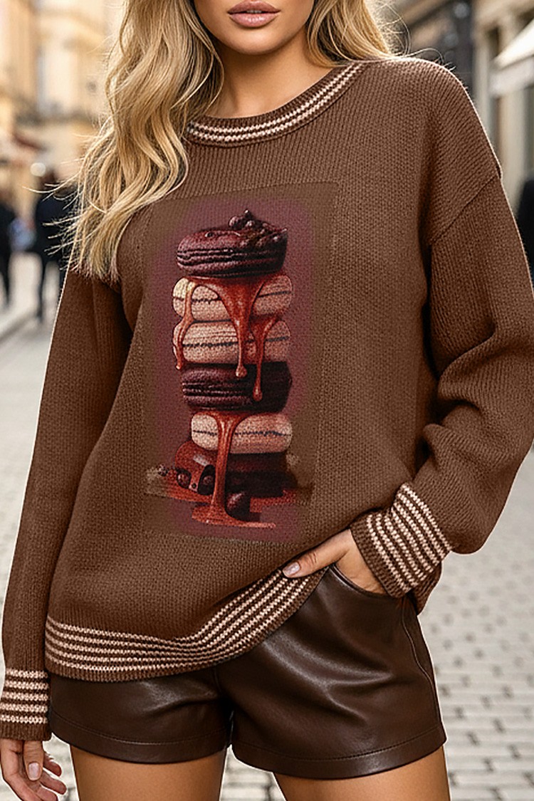 - Дамски пуловер с ефектрен принт, изработен от мека и приятна на допир материя.