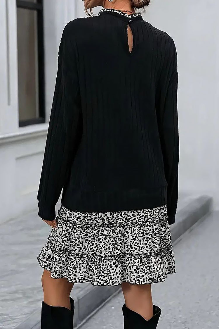 - Роклята е с разкроена кройка, дълги ръкави, поло и ефектен дизайн.
