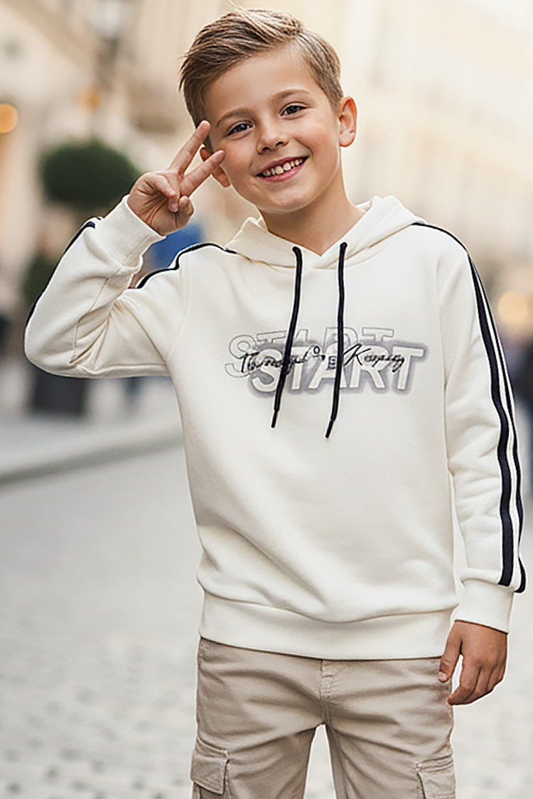• Детски суичър с тренди дизайн, качулка, ефектен надпис и дълги ръкави.