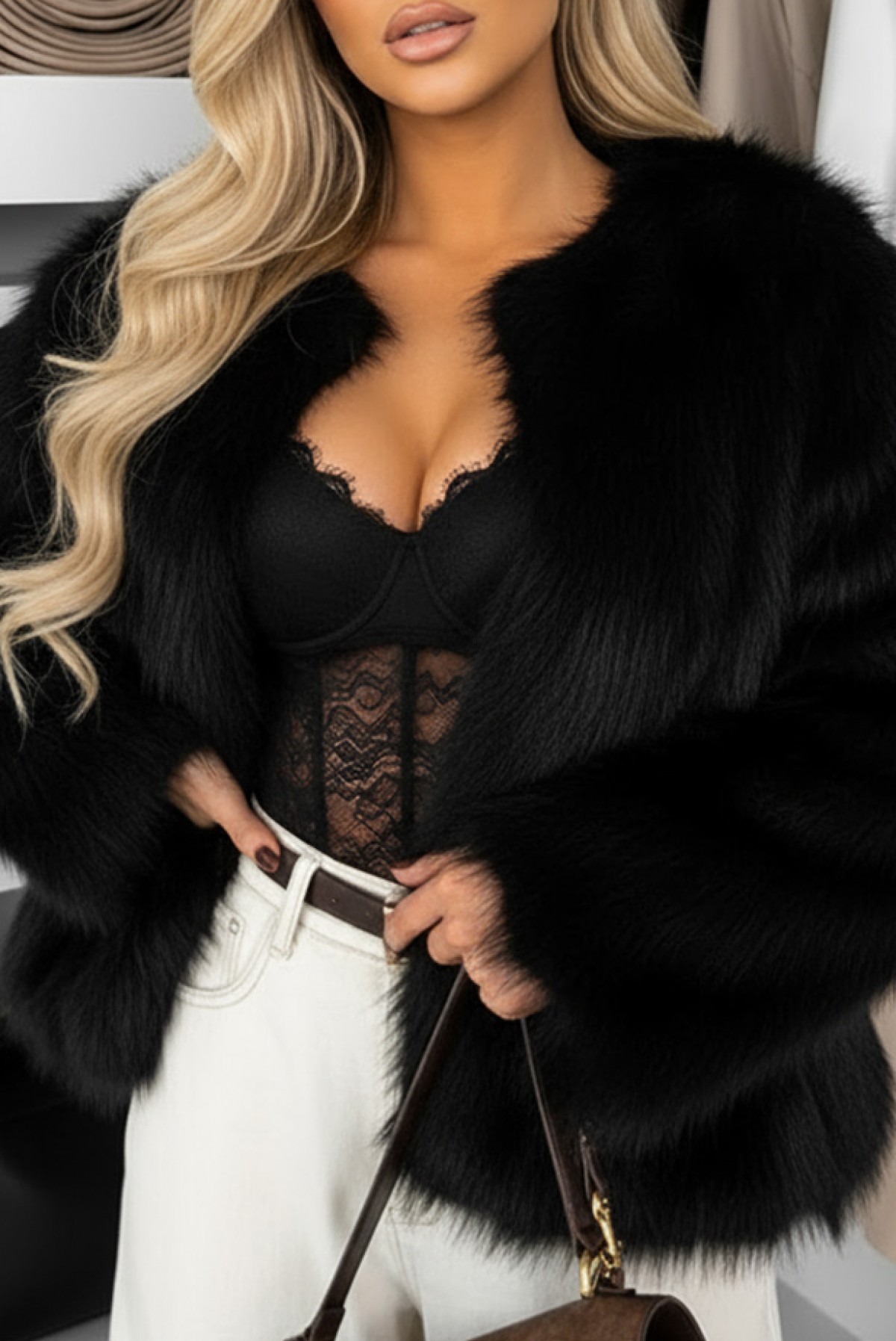 - Моделът е висок 170 cm и позира с универсален размер.
