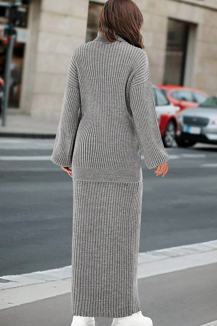 • Актуален комплект от две части - комфортна пола и пуловер със семпъл дизайн.
