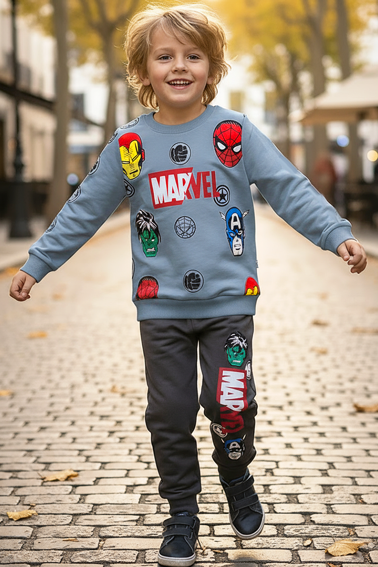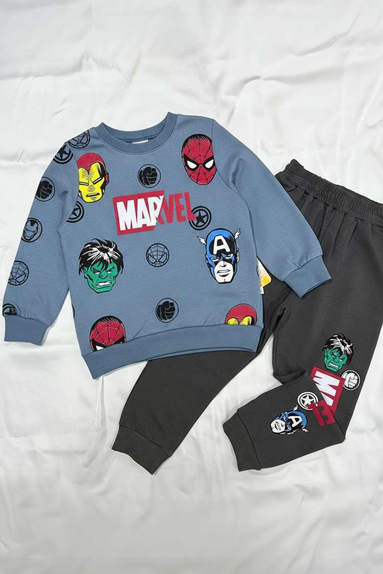 - Горната част е с дълги ръкави и принт на Марвел, а панталоните са с висока и еластична талия.