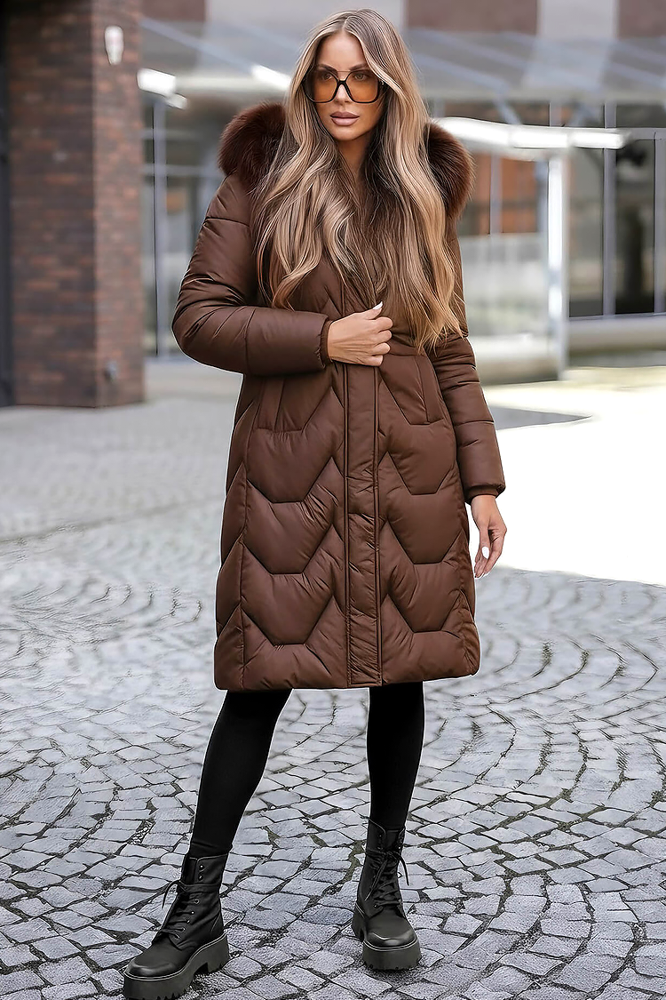 • Моделът е с удобна кройка, закопчаване с цип, практични джобове и качулка с пух.