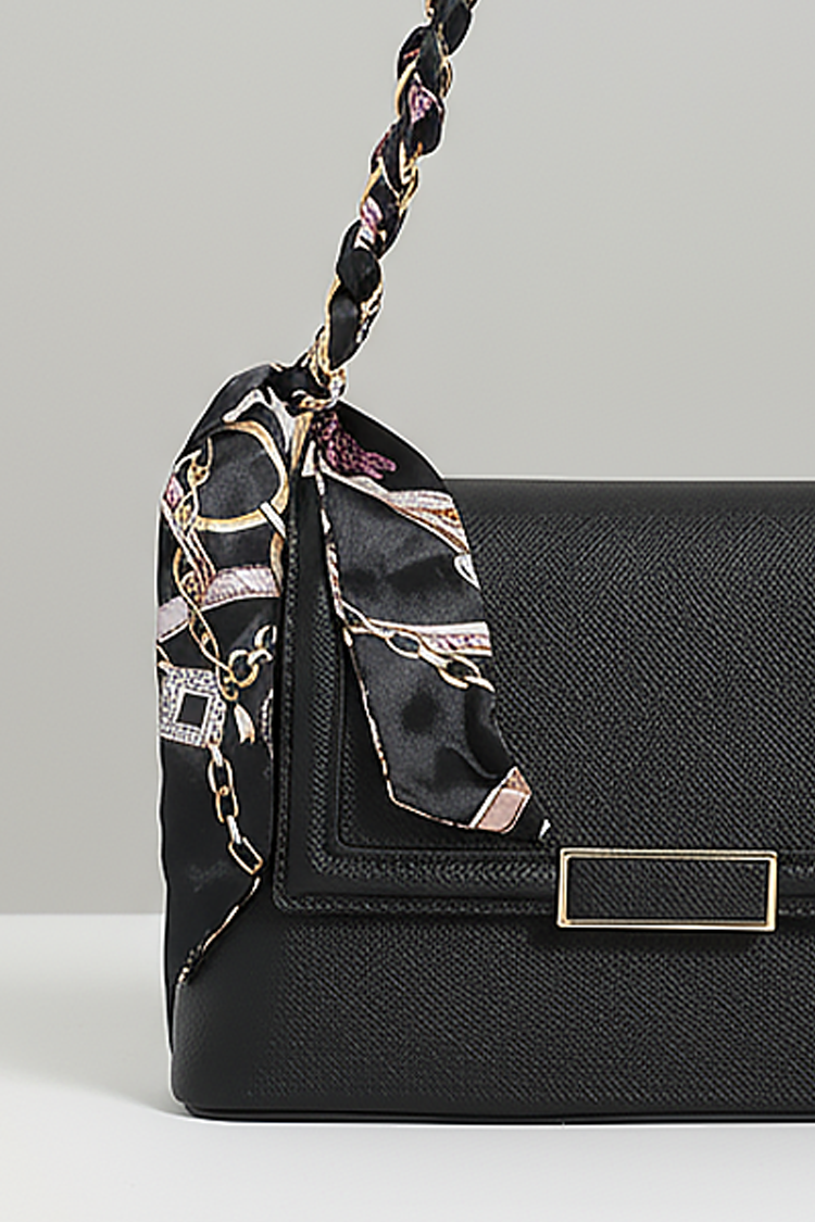 • Чантата разполага с дълга дръжка, ефектно закопчаване и стилен акцент- шалче.