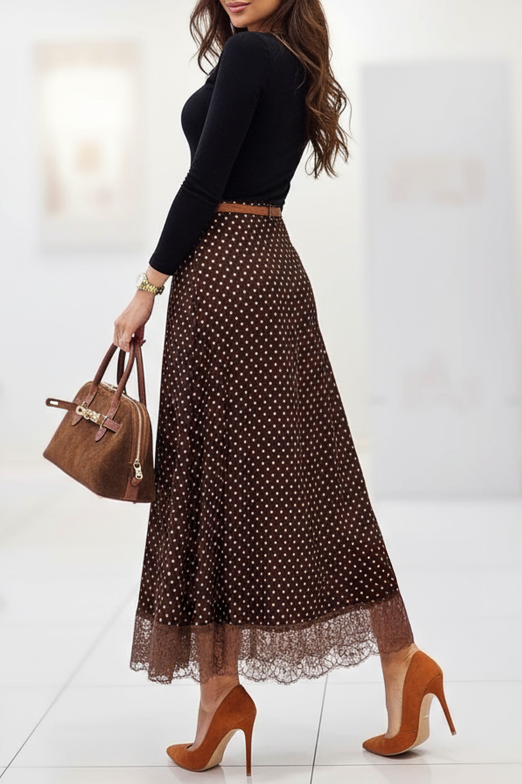 - Стилна и нежна миди пола с ефектна кройка, подходяща за различни модни поводи.