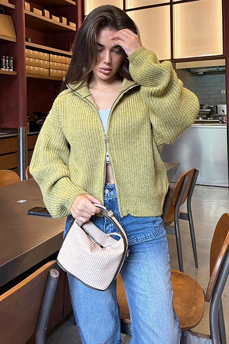 - Мека и топла дамска жилетка с удобна кройка, яка и цип, подходяща за ежедневието.