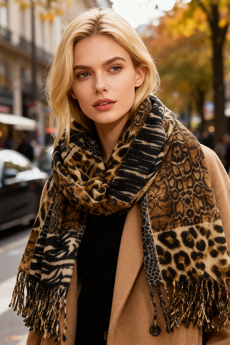 - Дамски модел шал в животински десен, който перфектно ще допълни вашата стилна визия.