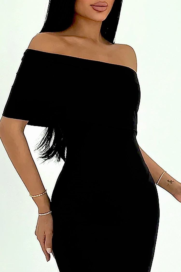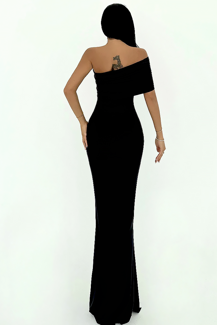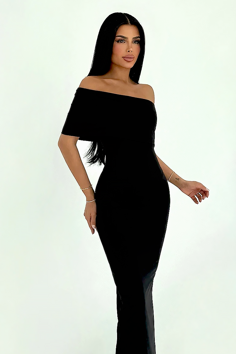 • Моделът е с вталена кройка, подчертаваща фигурата и ефектно асиметрично деколте.