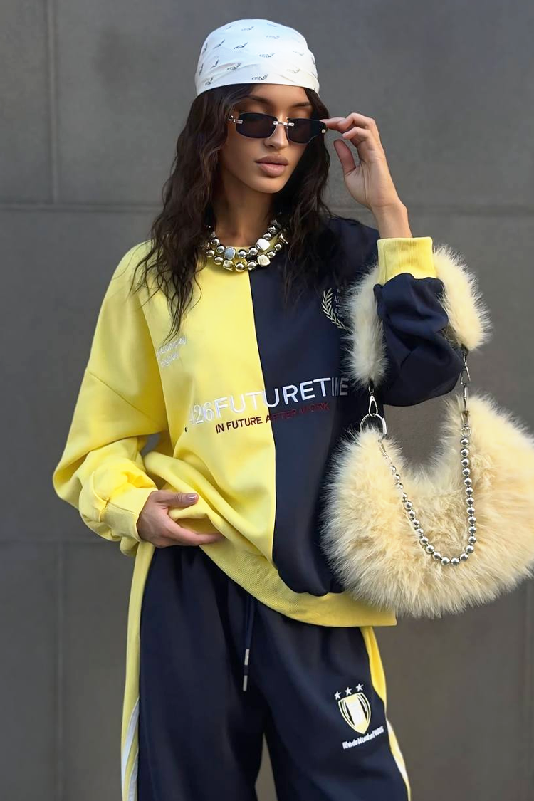 - Ежедневен дамски комплект от две части с двуцветен десен.