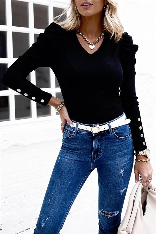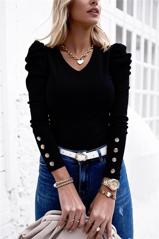 - Блузата е с класическа и удобна кройка, с кокетен дизайн с копчета на ръкавите.