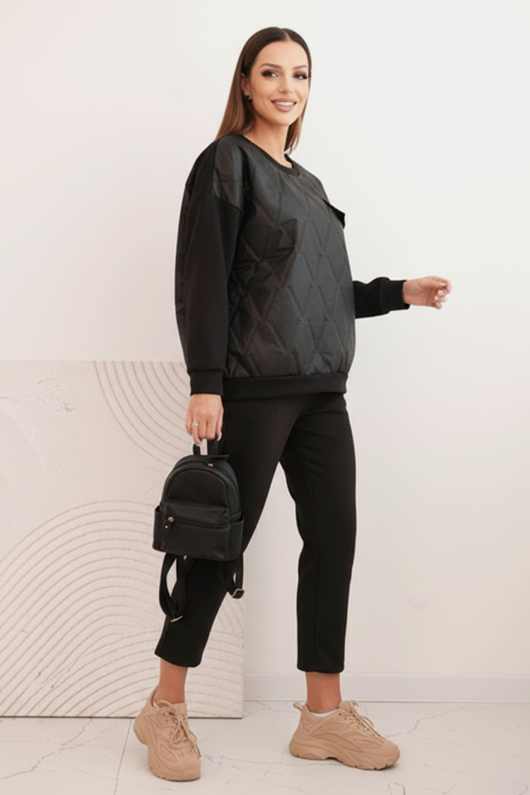 • Ежедневен дамски комплект от две части в едноцветен десен.