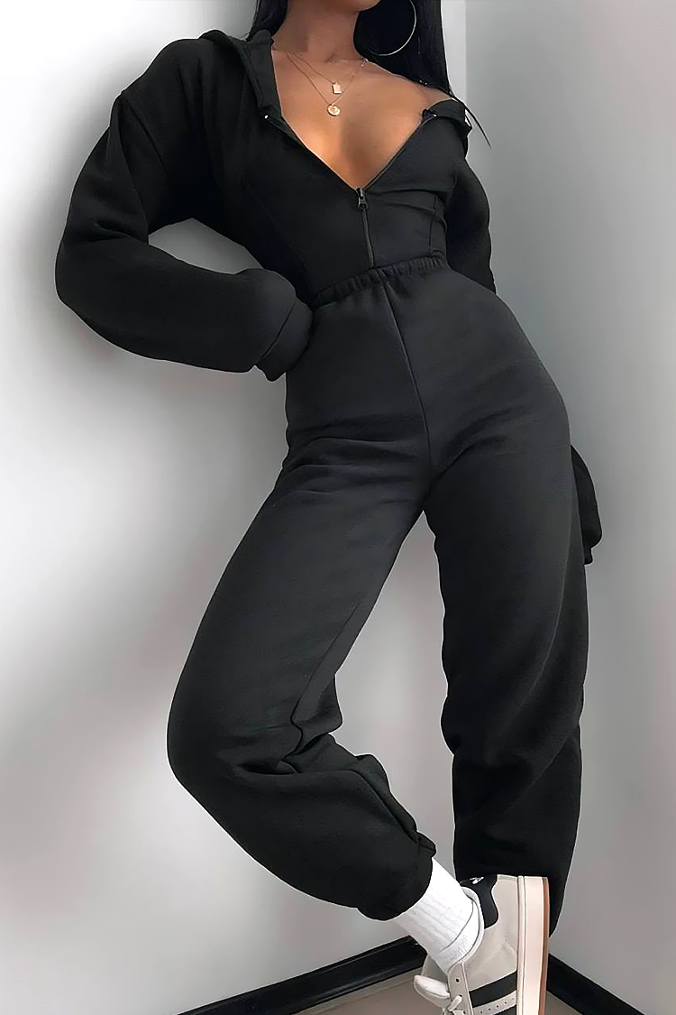 - Дамски гащеризон с едноцветен десен и ефектно закопчаване, подходящ за ежедневието.