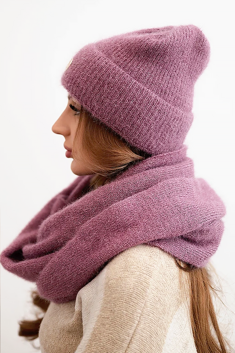 • Допълнете вашия аутфит с комплект от две части – шапка и шал в класически цвят.