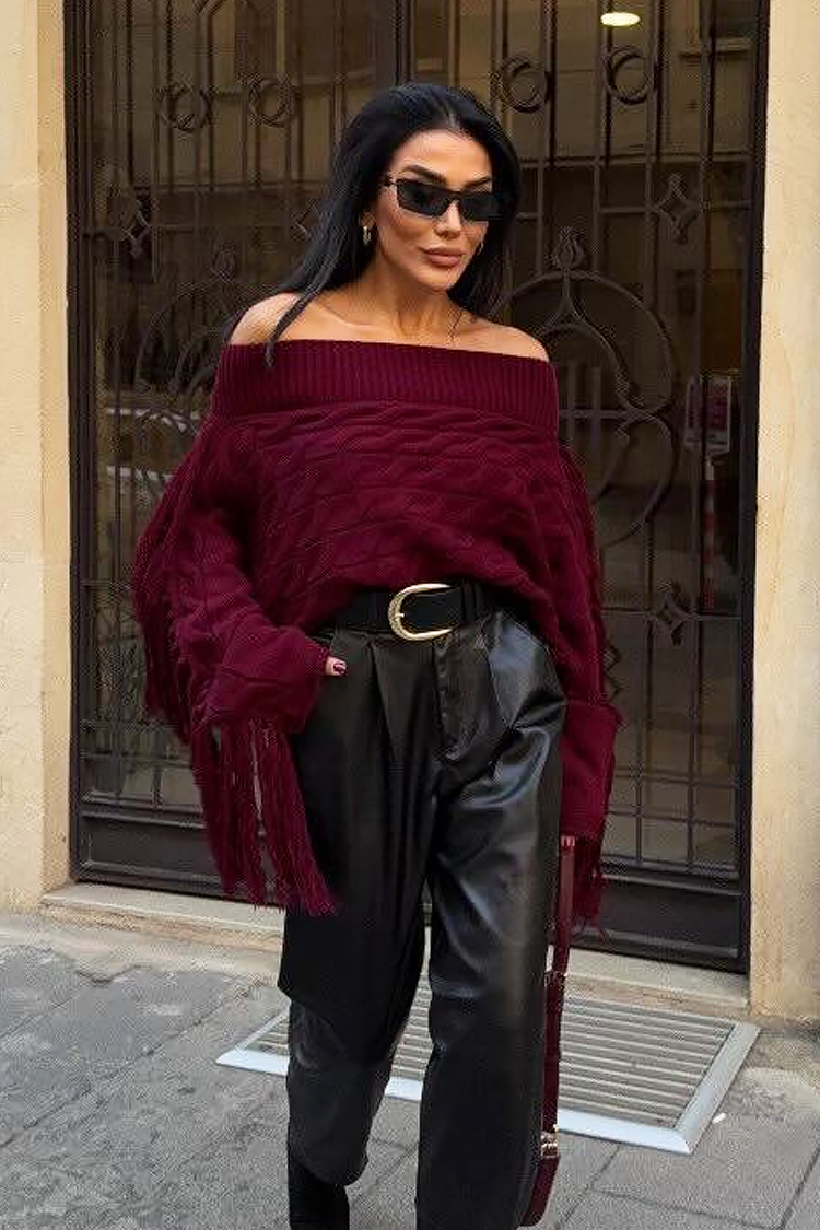- Стилен дамски пуловер в бордо цвят, подходящ за ежедневни и тренди визии.