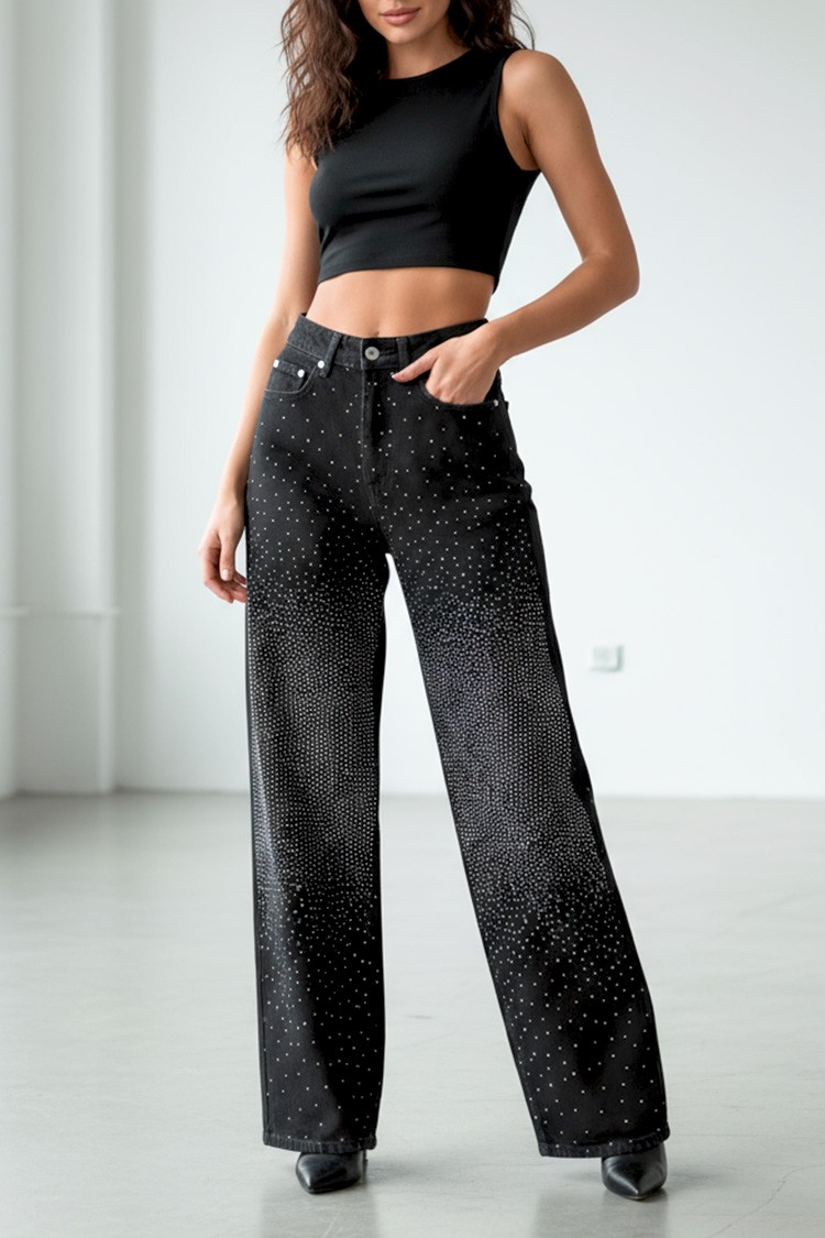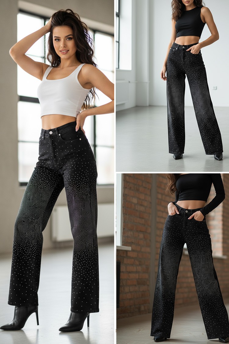 • Моделът е с висока талия и невероятен дизайн с блестящи камъчета.