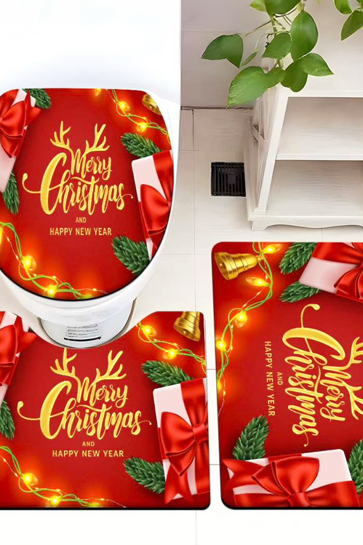 - За твоя по-уютен дом! Страхотен комплект за баня от 3 части с коледен десен.