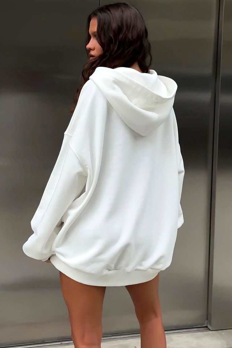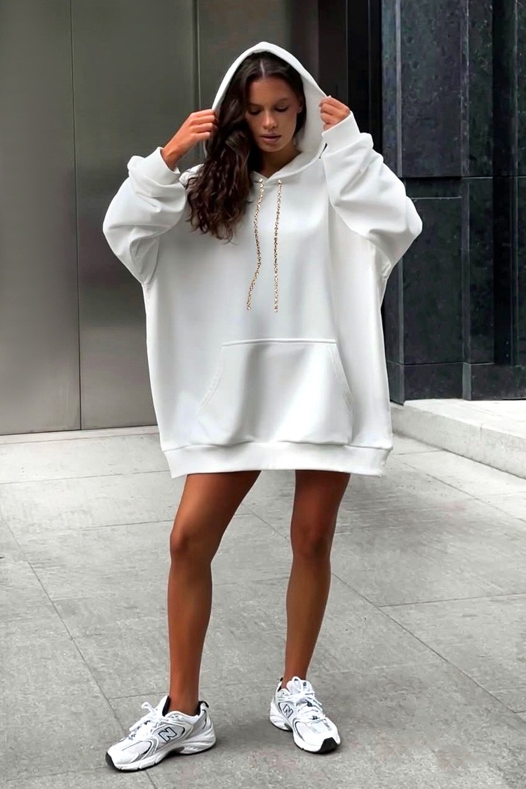 • Със свободна кройка, голям джоб отпред и качулка с връзки.