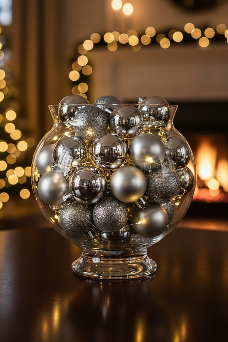 коледни стъклени топки за украса KIORDY SILVER - 24 бр.