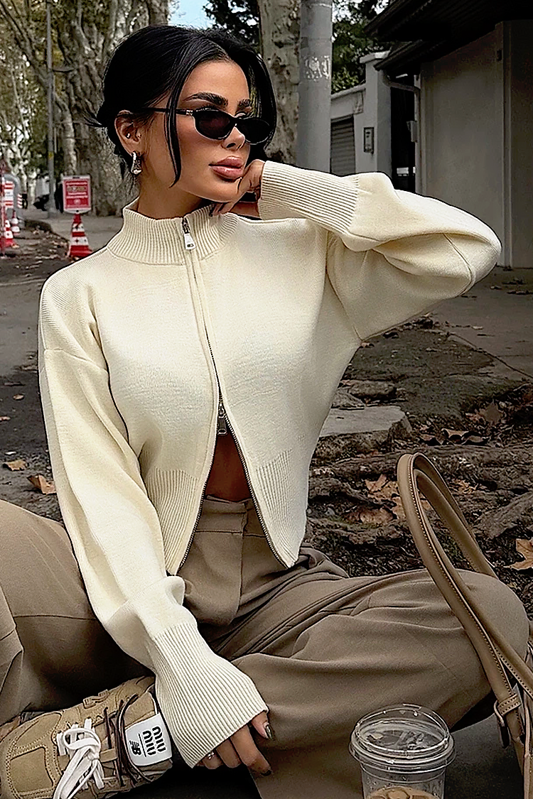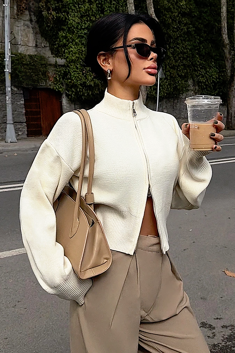 - Моделът е с яка, секси вталена кройка и се закопчава с цип отпред.
