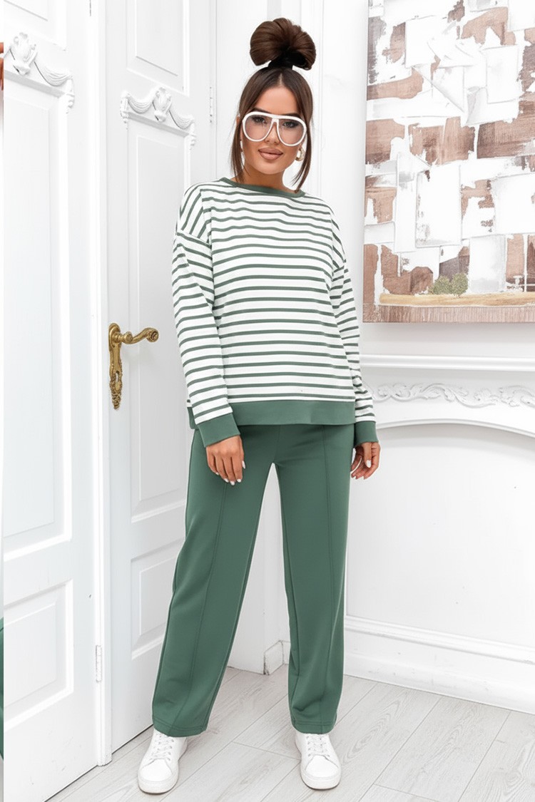 • Ежедневен дамски комплект от две части в ефектен десен райе.