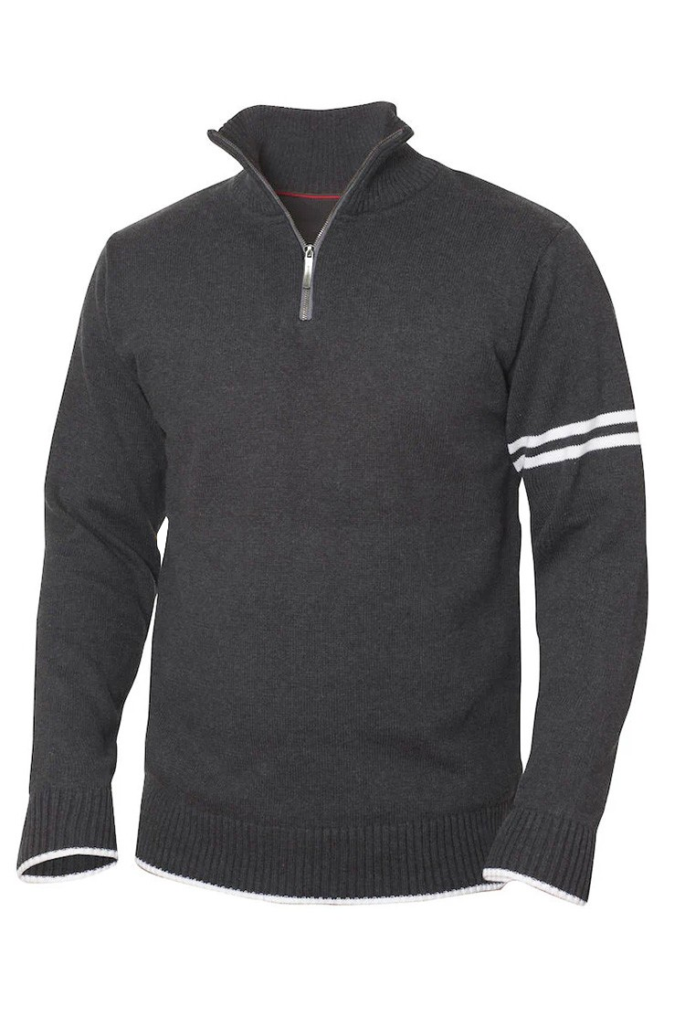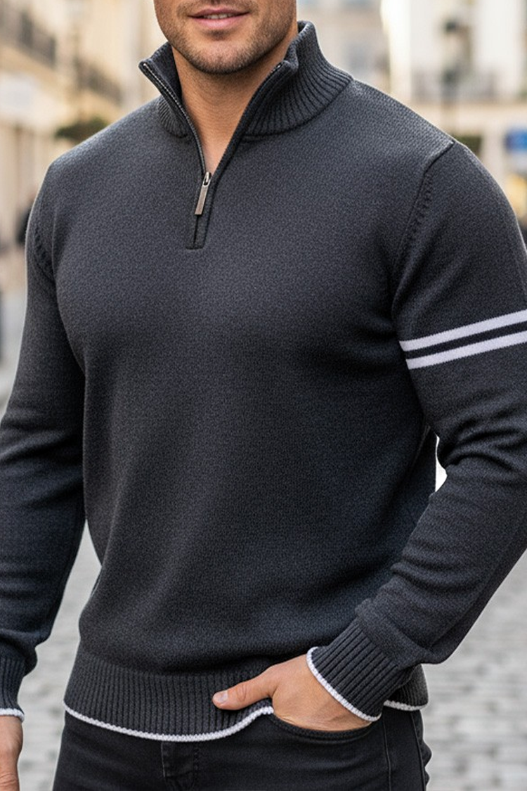 - Модерен мъжки пуловер с поло яка с цип, подходящ като допълнение към ежедневния аутфит.