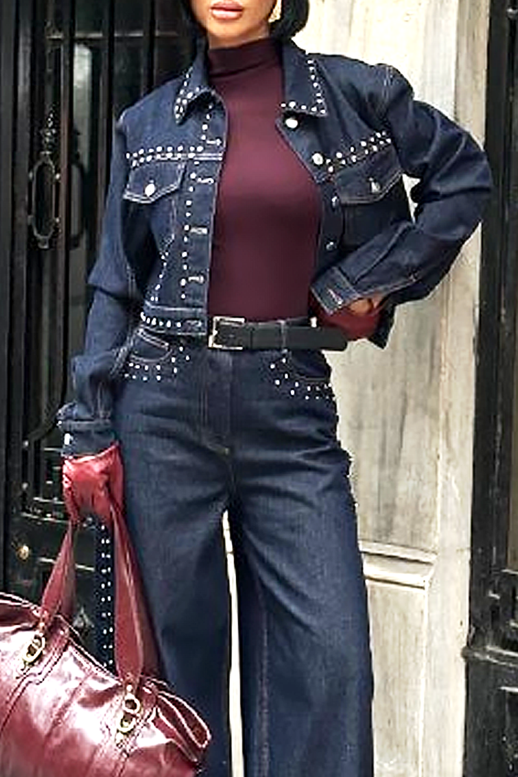 • Дънков дамски комплект от две части, подходящ за ежедневието.