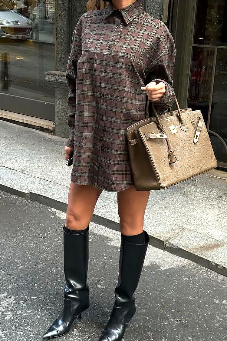 - Моделът е с кариран дизайн и стандартно закопчаване с копчета.