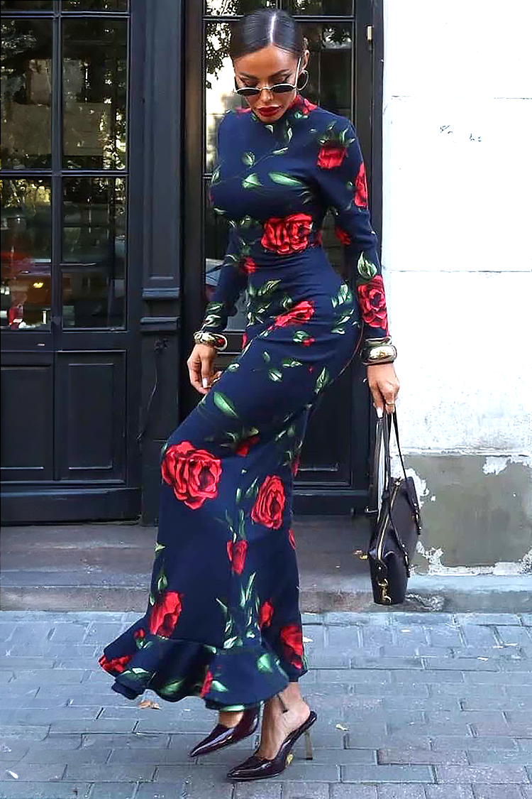 • За елегантната си визия се доверете на тази дълга рокля с атрактивен десен.