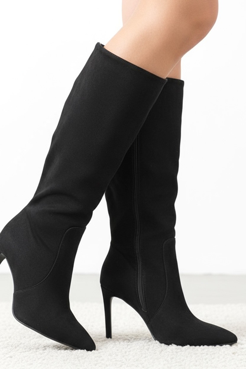 - Елегантен и стилен модел дамски ботуши от мек еко велур в класически цвят.