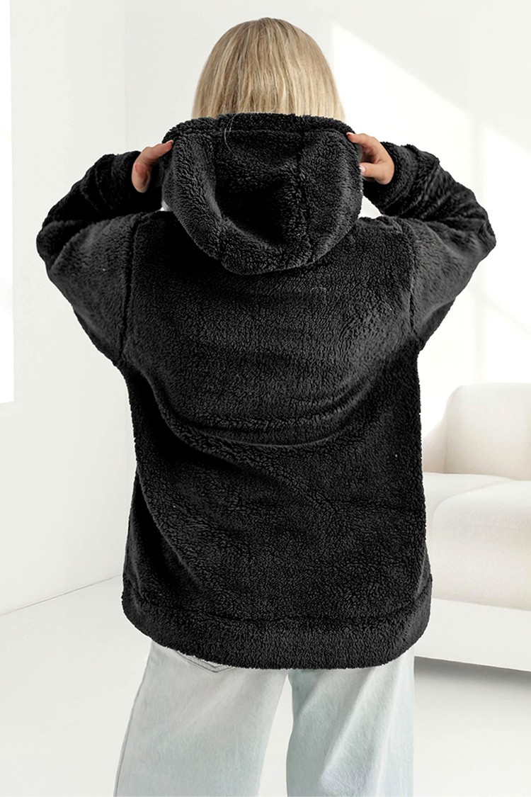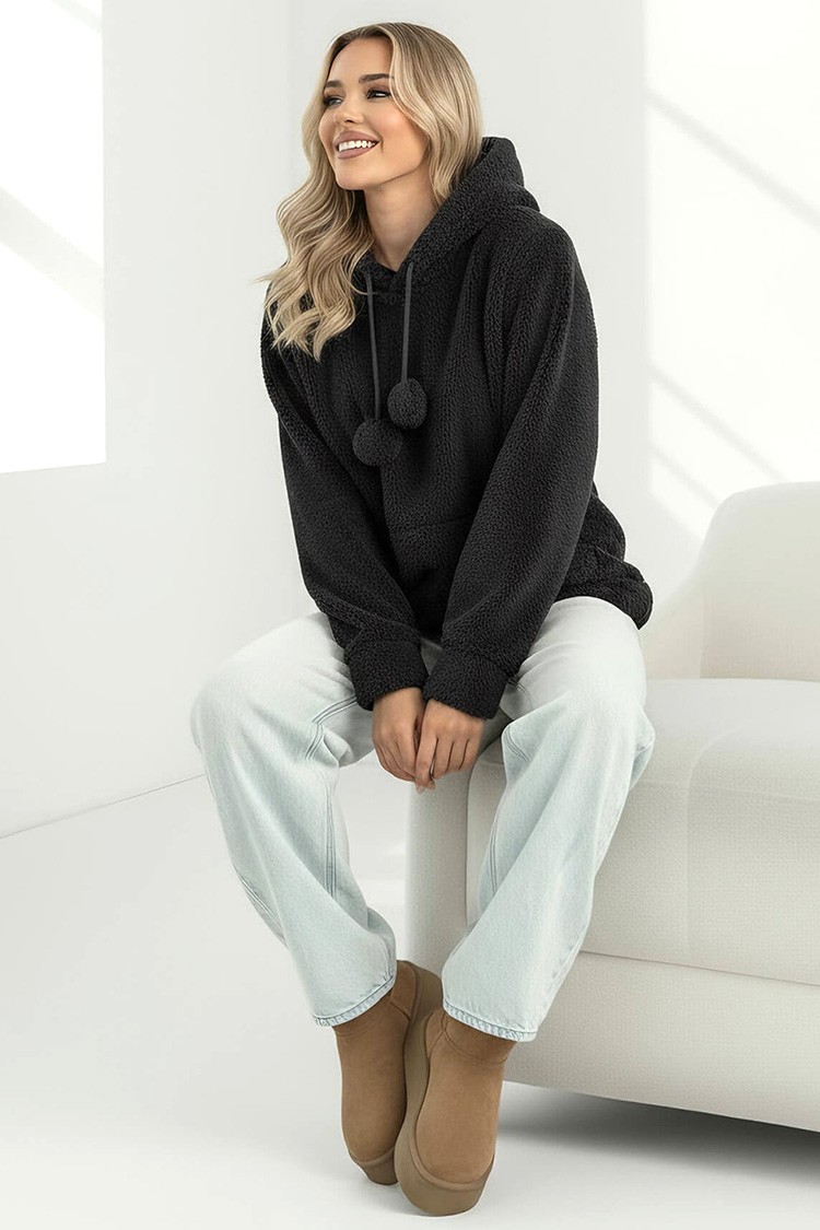 • С удобна кройка, подходяща за всяка фигура, качулка с връзки и голям джоб отпред.