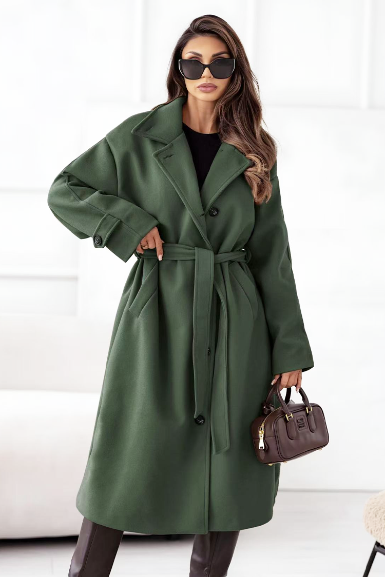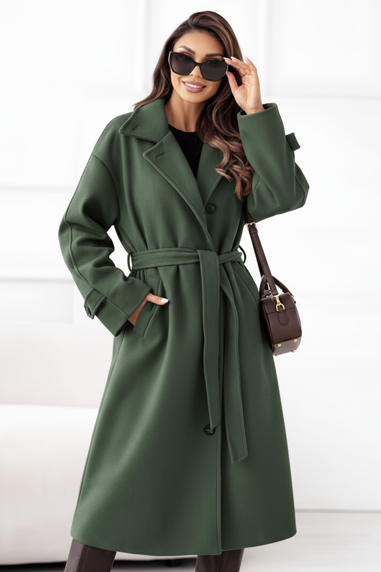 • Моделът разполага с текстилен колан в същия цвят и стандартно закопчаване с копчета отпред.
