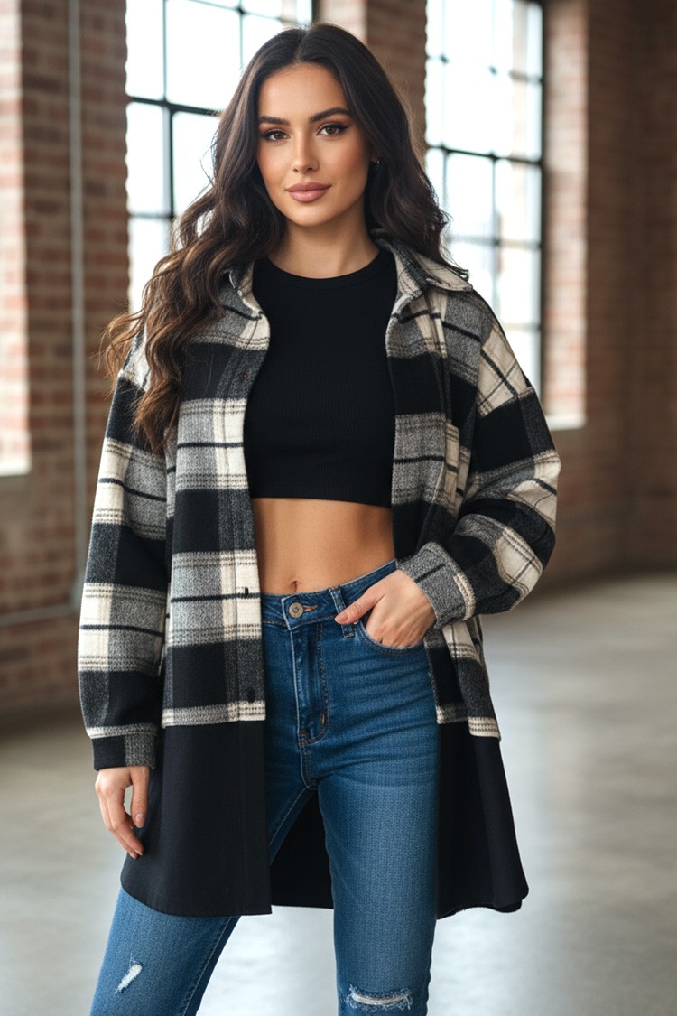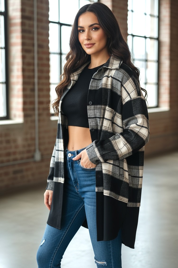 • Моделът е с кариран дизайн и стандартно закопчаване с копчета.