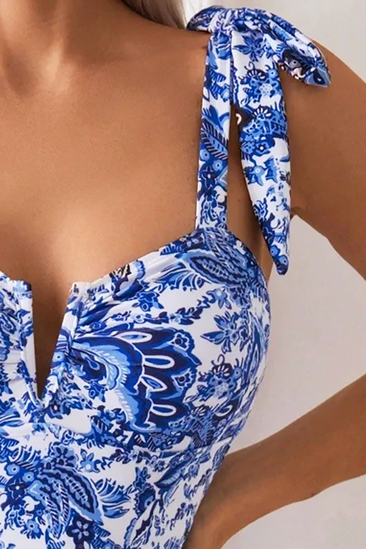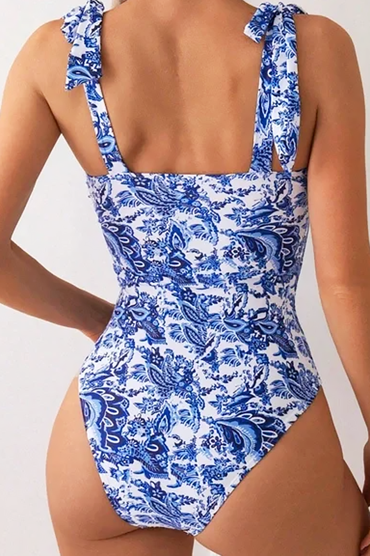 - Цял бански костюм в двуцветен десен, подходящ за море и спа почивки.