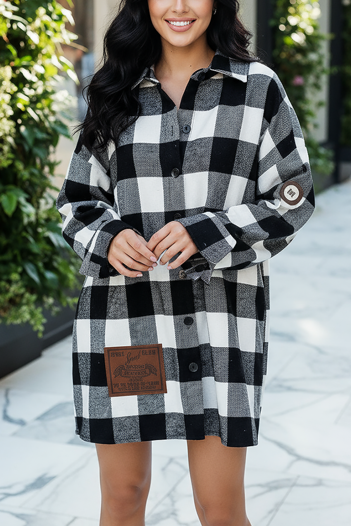 - Моделът е с кариран дизайн, стандартно закопчаване с копчета и овърсайз дизайн.
