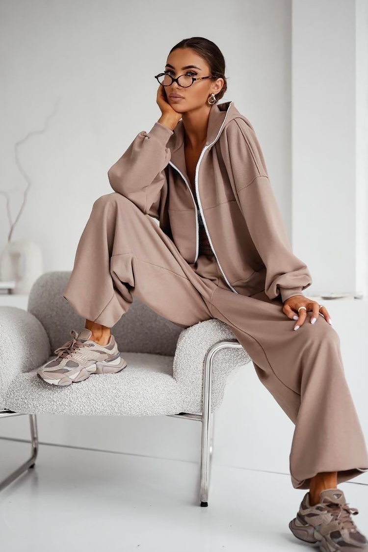• Горната част е суичър със свободна и класическа кройка, цип и качулка.