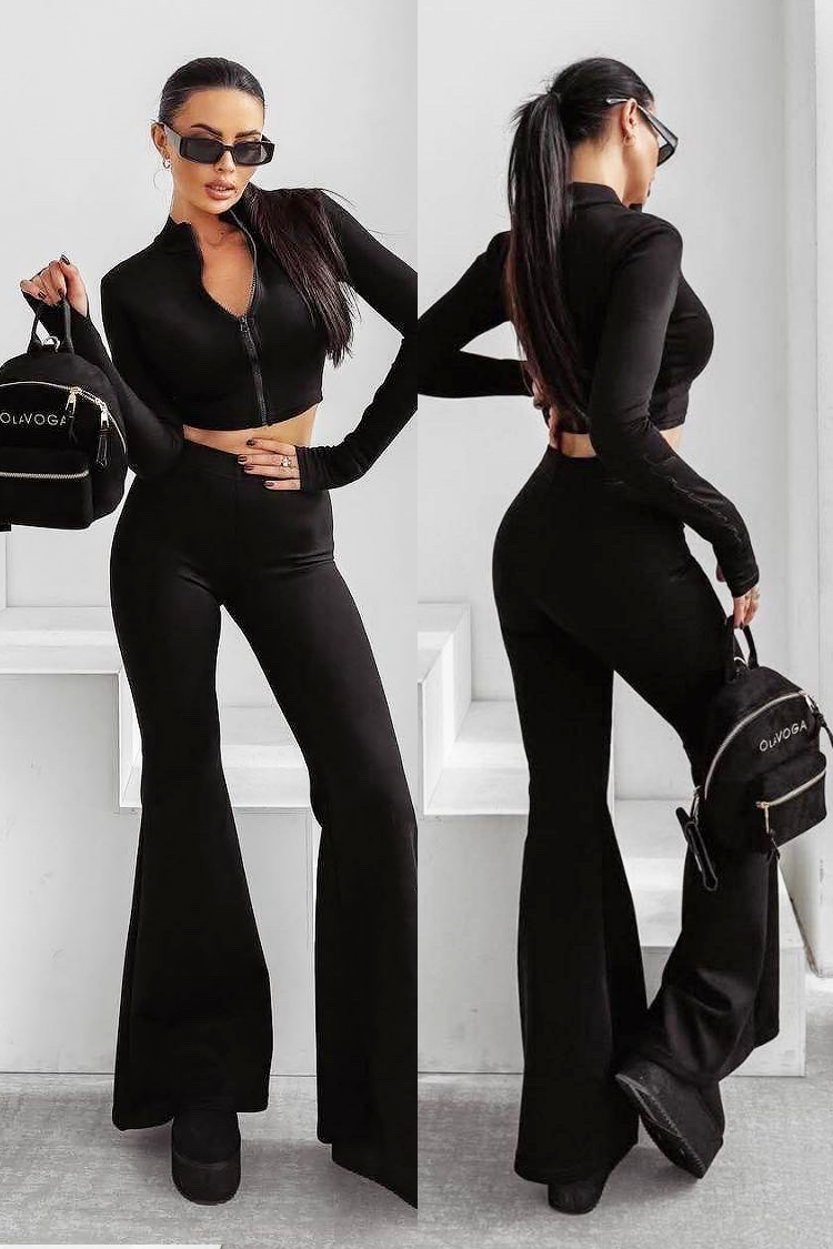 - Горната част е суичър с вталена кройка, кроп дължина, цип и яка.