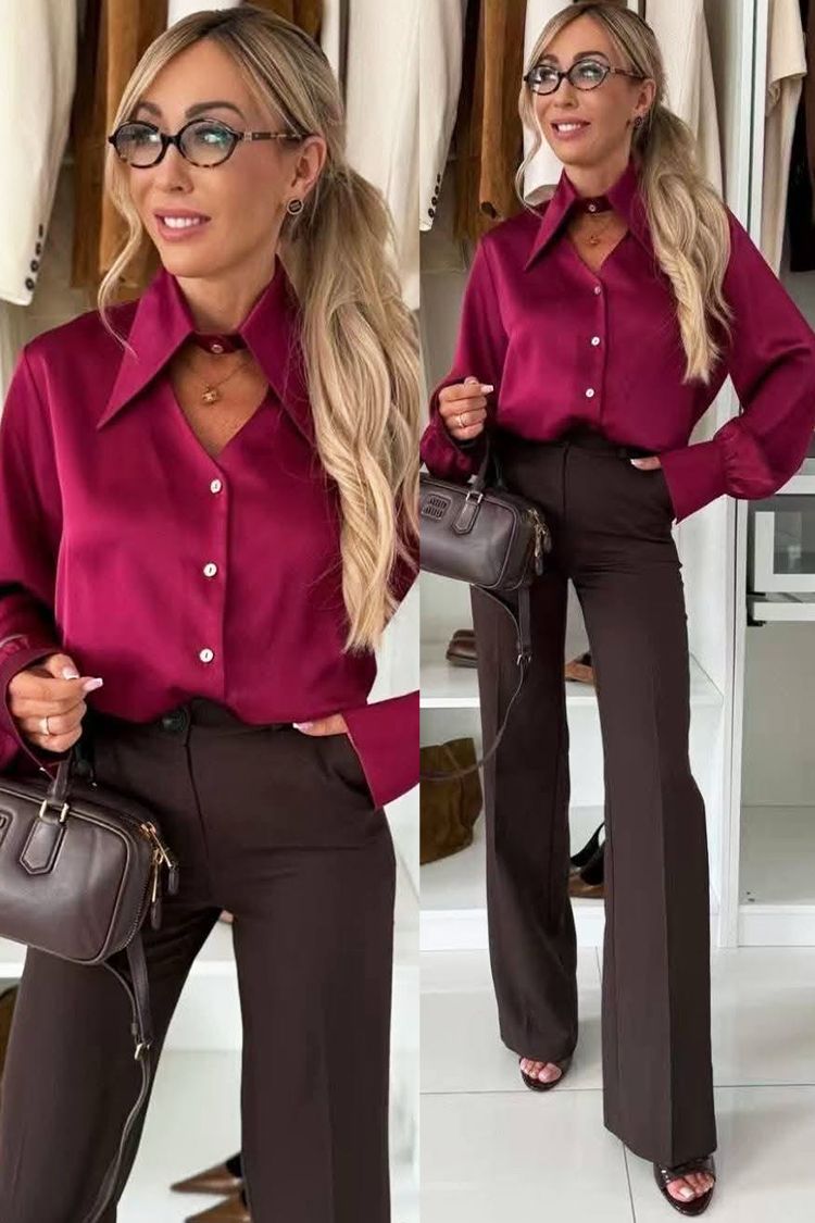 • Ризата е с дълги ръкави и стандартно закопчаване с копчета по дължината и яка.