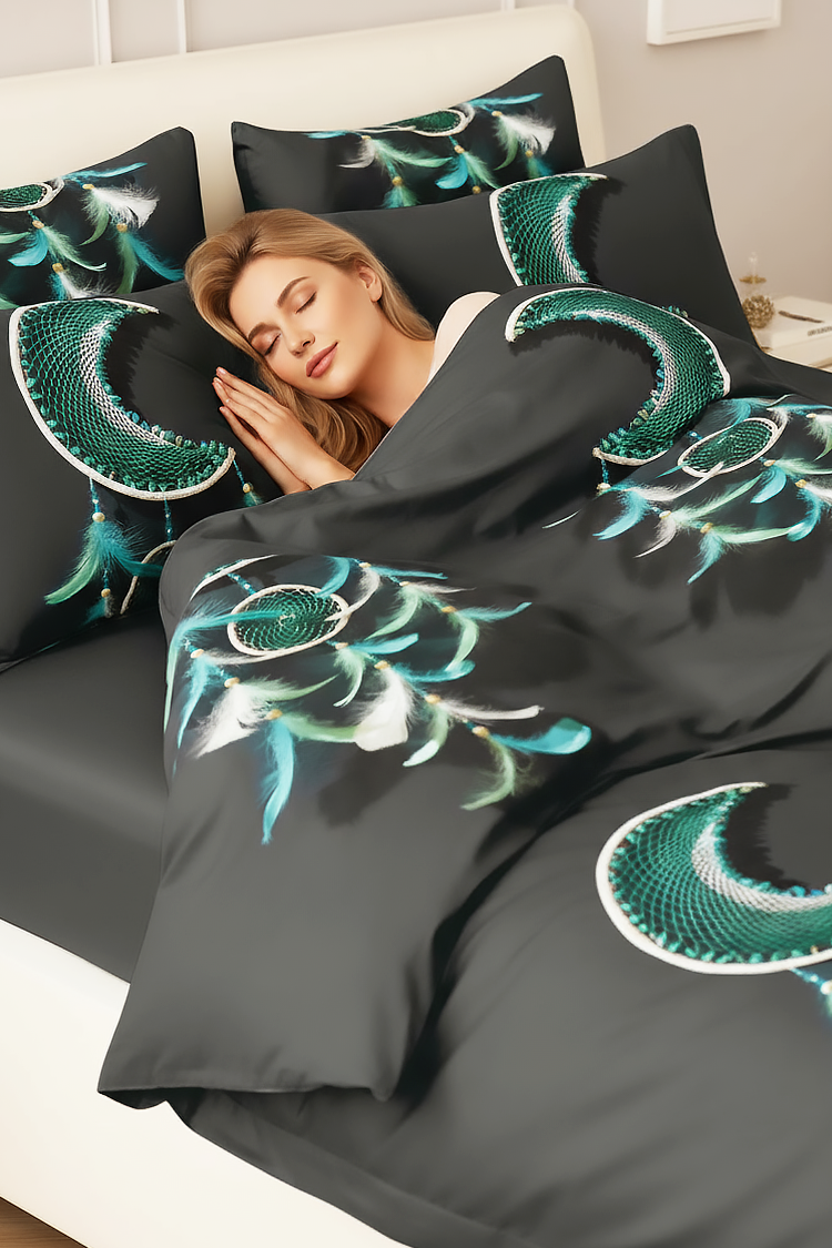- Спален комплект от четири части с размери 200x220 см., изработен от висококачествен памучен сатен.