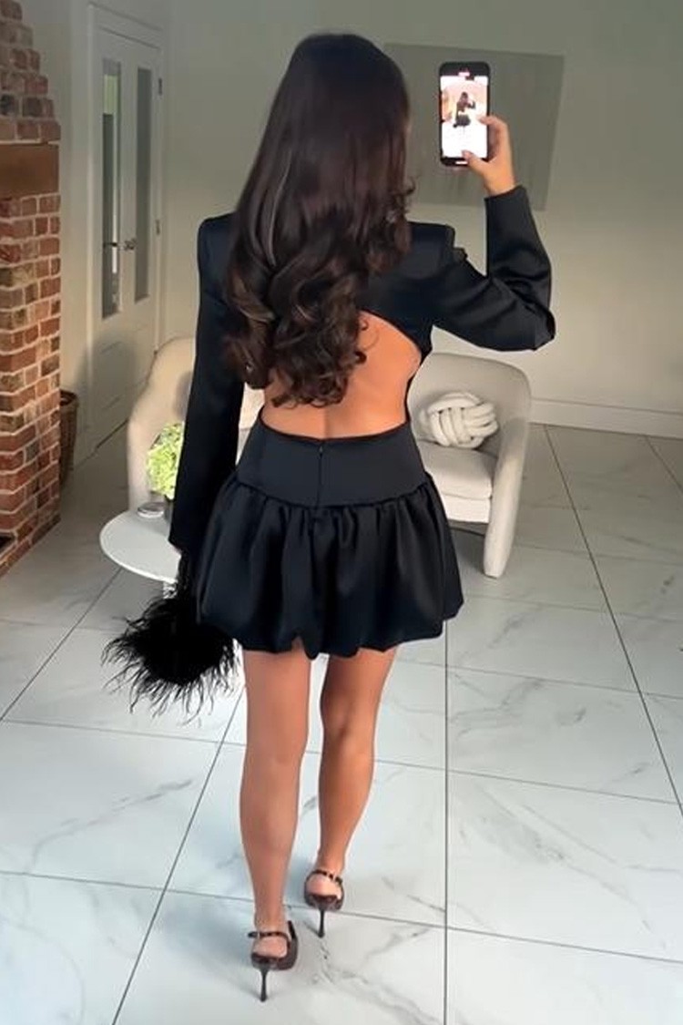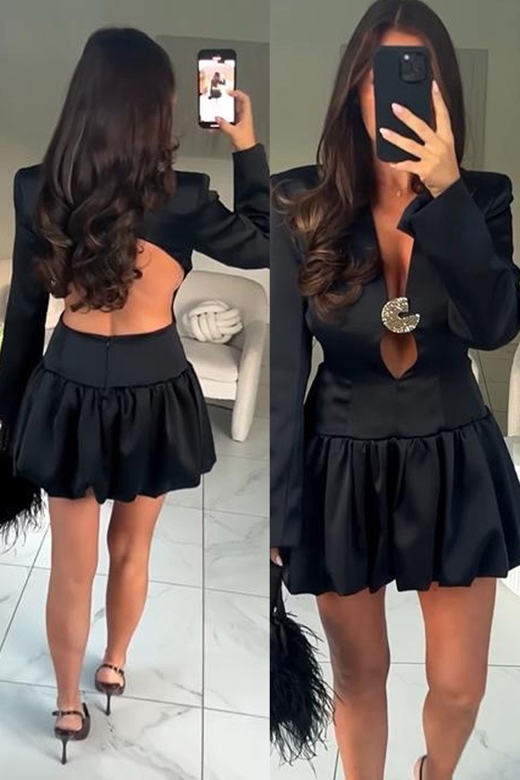 - Моделът е с V- образно дкеолте с златен детайл, секси гол гръб, дълги ръкави и цип отзад за лесно обличане.