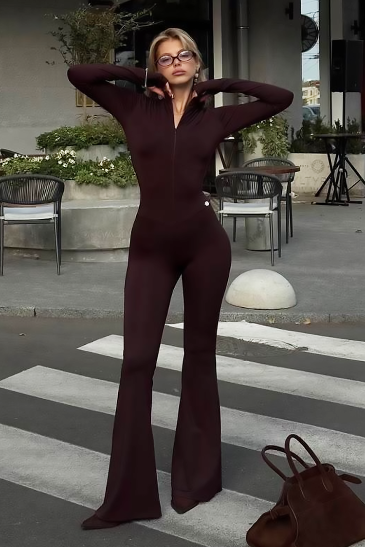 - Моделът е със секси и вталена кройка, дълги ръкави и практичен цип отпред.
